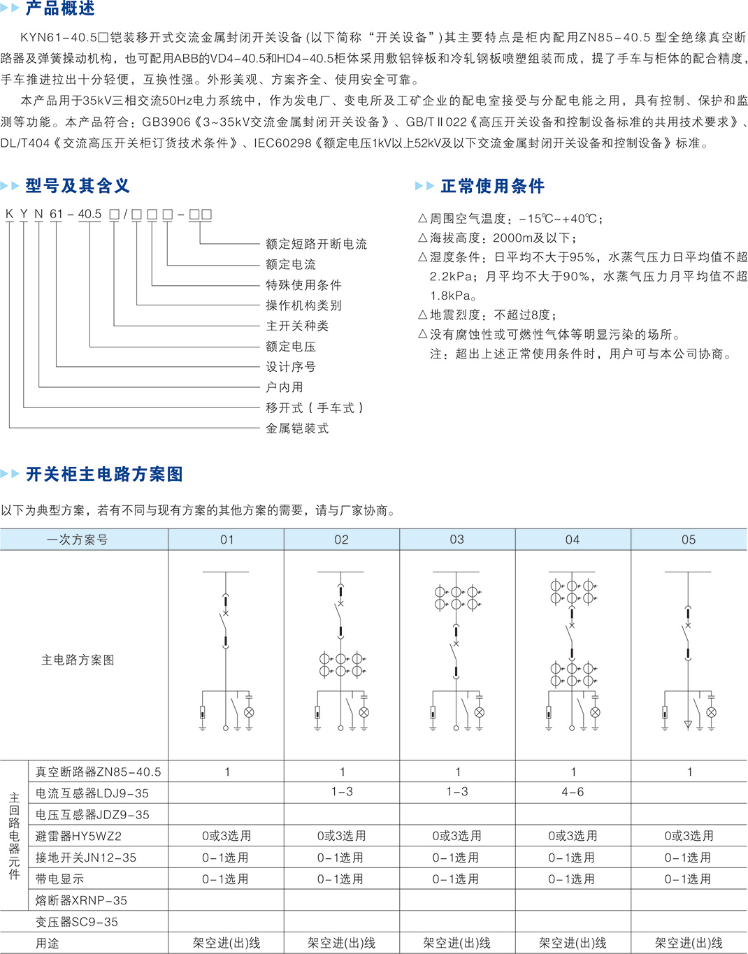 KYN61-40.5 铠装移开式交流金属封闭开关设备