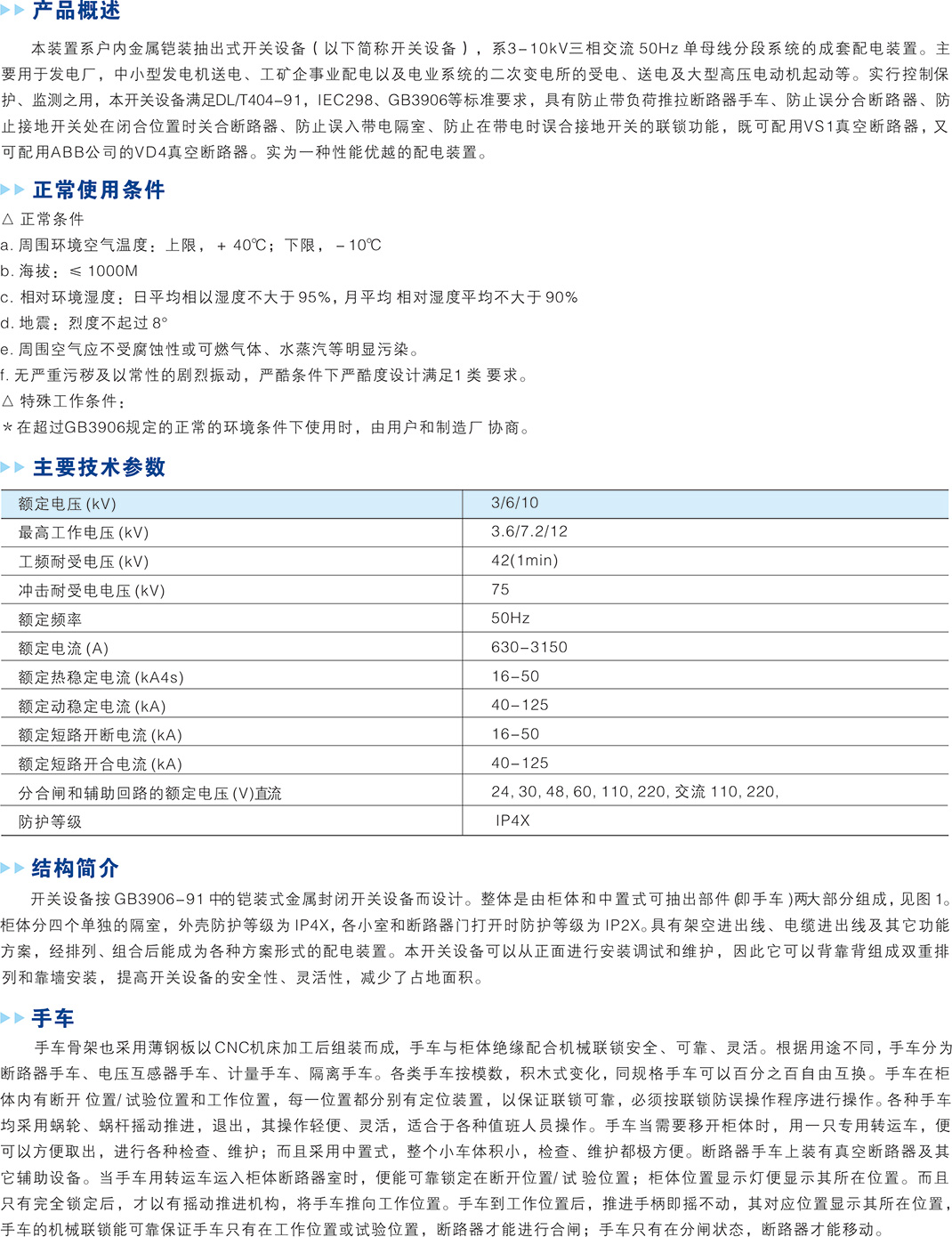 > KYN28-12铠装移开式交流金属封闭开关设备