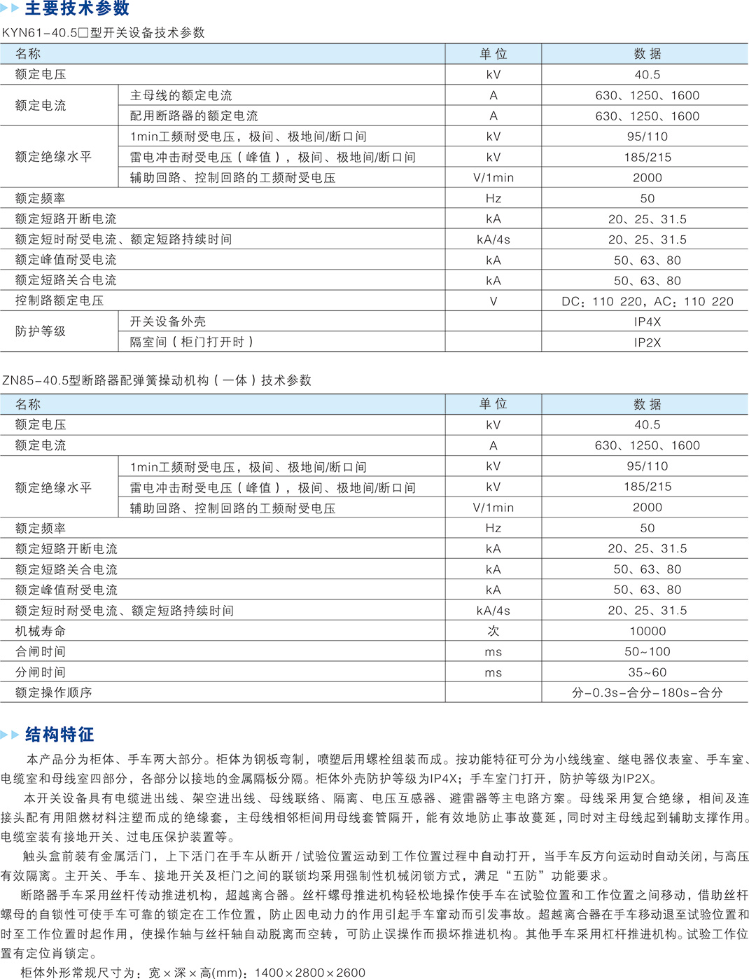 KYN61-40.5 铠装移开式交流金属封闭开关设备