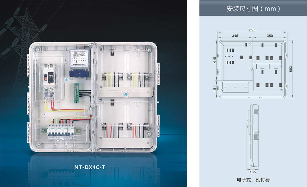 ,采用进口聚碳酸酯(PC)和阻燃ABS工程塑料制成。具有抗冲击、抗老化、耐腐蚀、透明度高、抗紫外线、安装方便等优点,并且具有用电安全保护,用户分离控制,数据采集, 防盗电等功能。产品适合安装电子式、机械式、智能IC卡预付式、智能多费率式电表。南腾NT系列透明