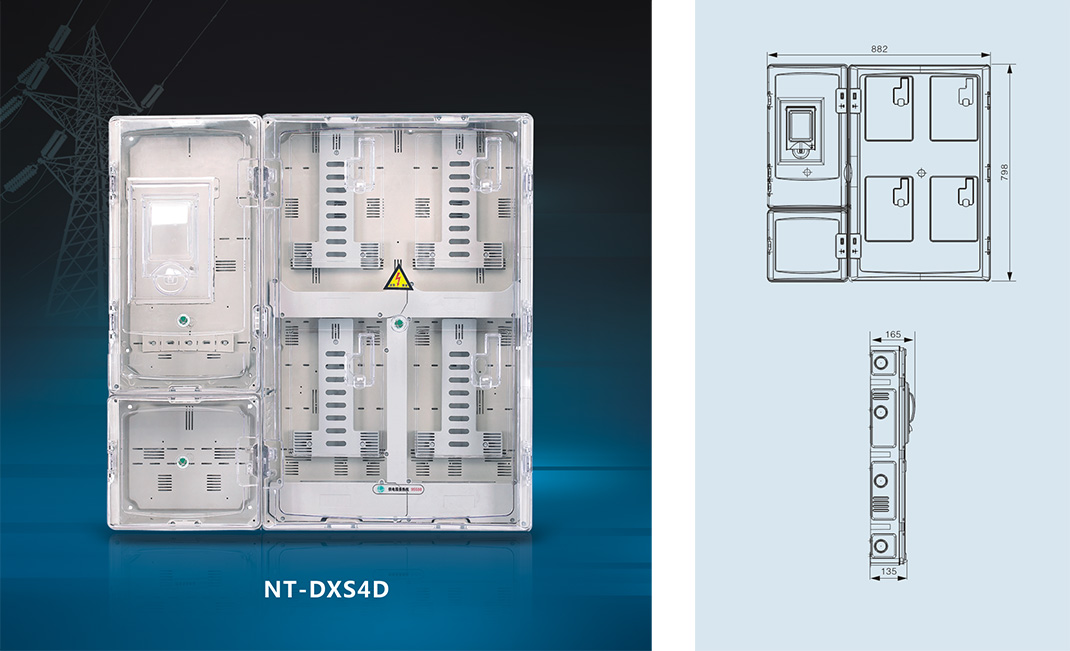 ,采用进口聚碳酸酯(PC)和阻燃ABS工程塑料制成。具有抗冲击、抗老化、耐腐蚀、透明度高、抗紫外线、安装方便等优点,并且具有用电安全保护,用户分离控制,数据采集, 防盗电等功能。产品适合安装电子式、机械式、智能IC卡预付式、智能多费率式电表。南腾NT系列透明