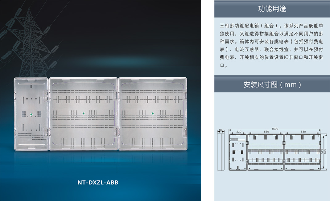 ,采用进口聚碳酸酯(PC)和阻燃ABS工程塑料制成。具有抗冲击、抗老化、耐腐蚀、透明度高、抗紫外线、安装方便等优点,并且具有用电安全保护,用户分离控制,数据采集, 防盗电等功能。产品适合安装电子式、机械式、智能IC卡预付式、智能多费率式电表。南腾NT系列透明