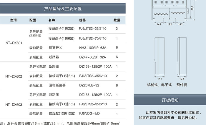 单相六表位电表箱(上下结构)产品型号及配置,南腾电表箱分享